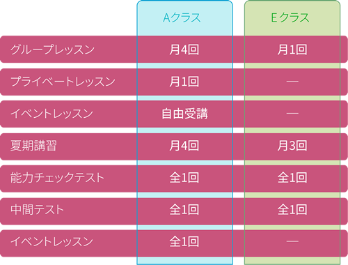 集団でのレッスンです。毎月決められたカリキュラムの目標に向かって、試験に近い人数構成でレッスンを行います。このレッスンでは集団ならではの協調性を強化していきます。